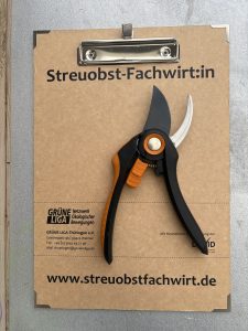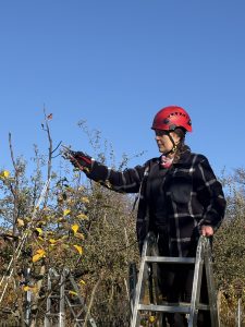 Cornelia trägt verschiedene „Helme“ in ihrem Arbeitsleben. Seit 2025 ist sie als zertifizierte Streuobstfachwirtin in ihrem Landkreis Saalfeld-Rudolstadt und darüber hinaus unterwegs.